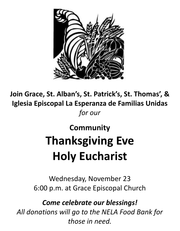 Join us at church or “virtually” for worship this Sunday, November 13, 2022, The Twenty-third Sunday after Pentecost: Proper 28, at St. Alban’s, St. Thomas’, St. Patrick’s, and Iglesia Episcopal La Esperanza de Familias Unidas.